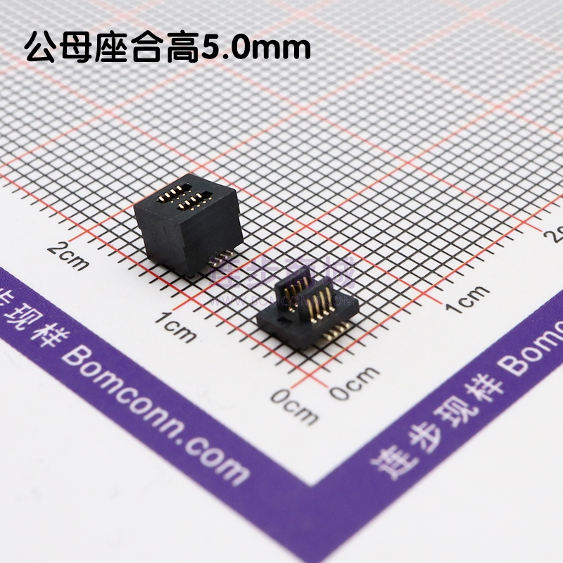 | 产品名称 | 双槽直插板对板连接器0.5间距8P(2*4) 合高5.0H 公高1.0H 母高4.0H |